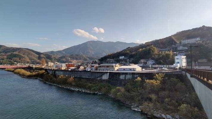 徳島県美馬市穴吹町穴吹東成戸 国道192号から望む吉野川