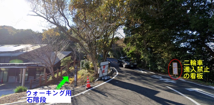 英虞湾が見渡せる橫山展望台駐車場に通じる登坂道路入口にむごい告知が