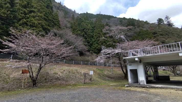 12:00 飛水峡ロックガーデン駐車場の桜は、三分咲きくらい