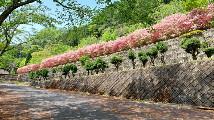 湖畔から戻るときに気が付いたツツジの植栽、いや、サツキか?