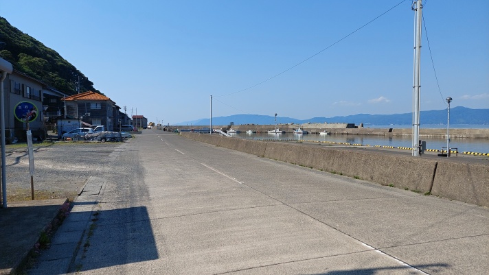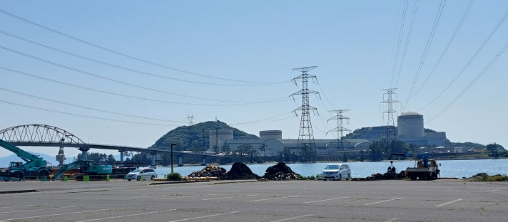 敦賀半島トンネルを抜け出たところ。 左側に敦賀原発があります。