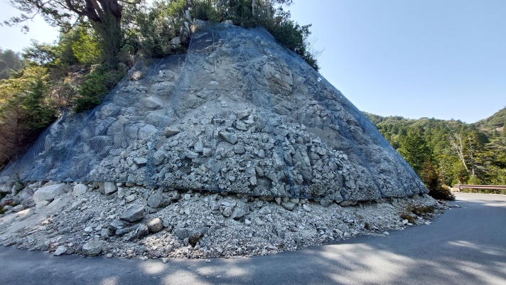 林道入口に「この先、土砂崩れにより通行止め」の小さな標示あるも通過!