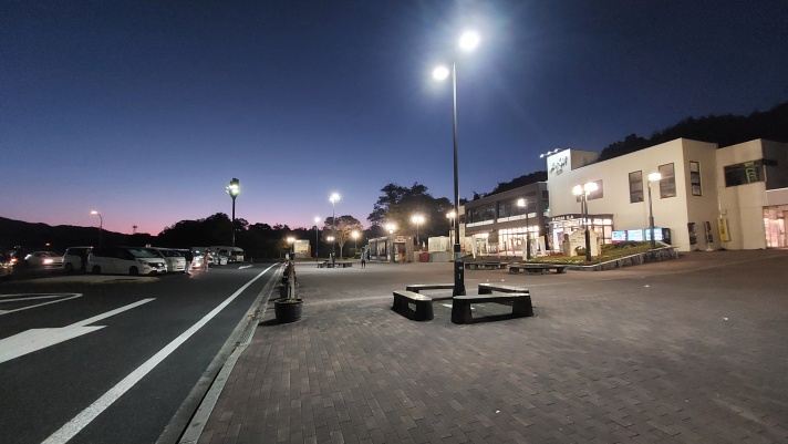 17:24 昼と晩を合わせてた食事を済ませ、西大分港フェリーターミナル 到着