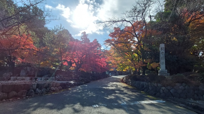 国道307号線沿い 胡宮神社 入口のモミジも真っ赤