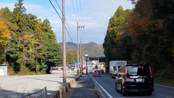 多賀大社交差点に向かう国道307号線 下り坂道