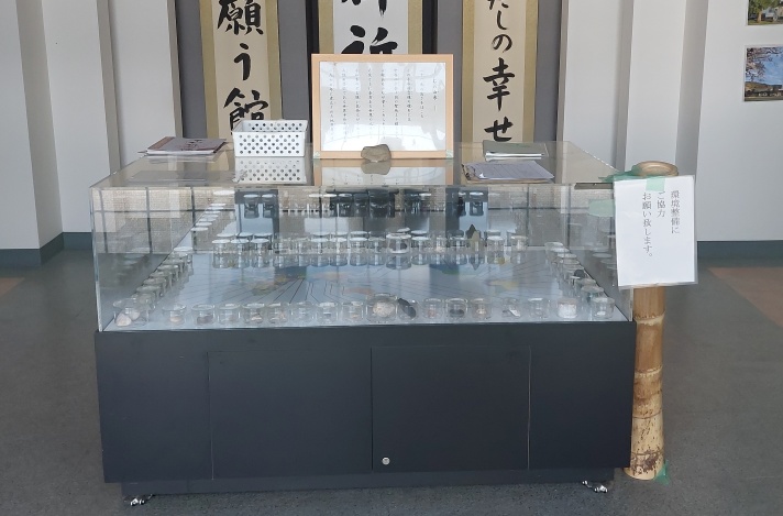 この平和記念像(地蔵尊)の礎石には、世界八十余ヶ国から贈られた由緒ある小石が塗り込められているそうです。 その石の展示があるようです。