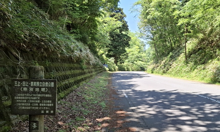 滋賀県側には、三上・田上・信楽県立自然公園(特別地域)の看板が
