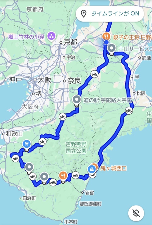 Googleマップのタイムライン記録を表示したキャプチャー画面