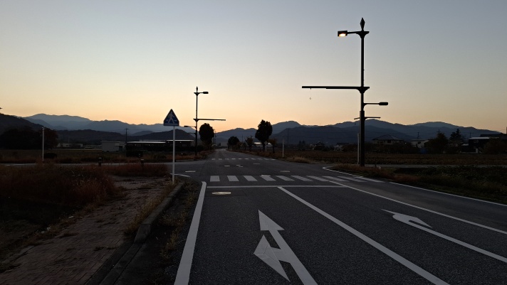 6:42 甲良町北落の道路より、日の出前の鈴鹿山脈を望む(御池岳、竜が岳方面)