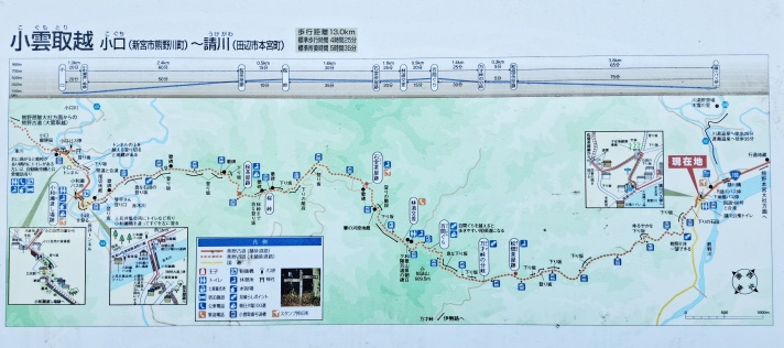 ここ田辺市請川から、新宮市小口までの熊野古道の案内図