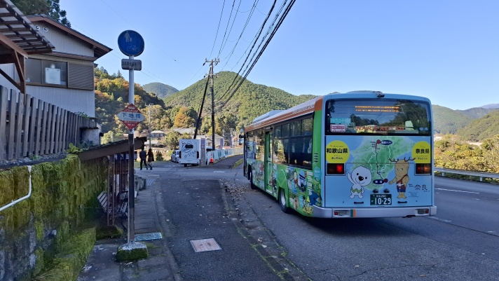 店の前がバス停 奈良交通の路線バス(新宮駅~大和八木駅)