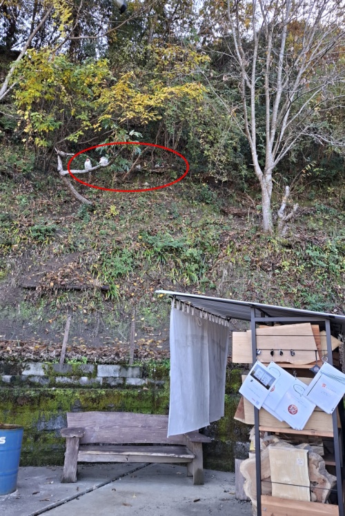 店の左側の裏山には、ニワトリが放し飼い