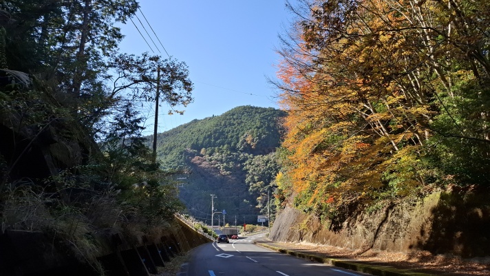 13:02 晩秋の紅葉ですね (国道425号線 田辺市龍神村柳瀬)