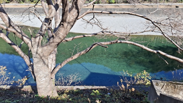 道の駅の裏側にある日高川はエメラルドグリーンで、透明度はバツグンでしたが・・・