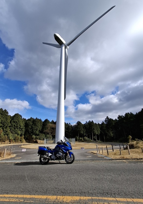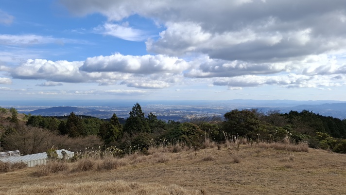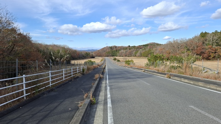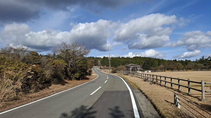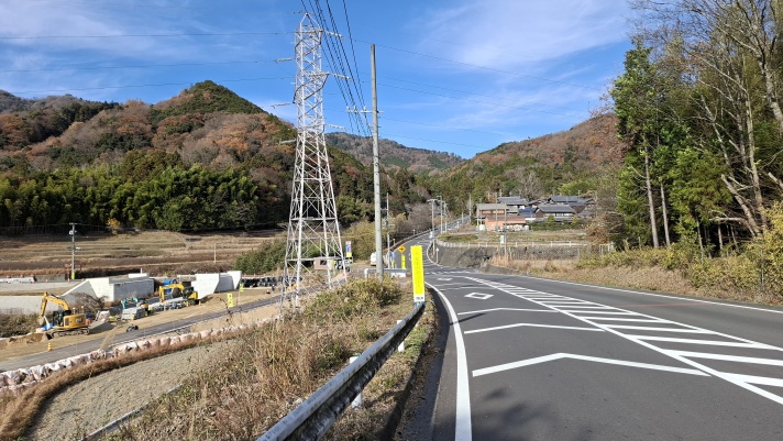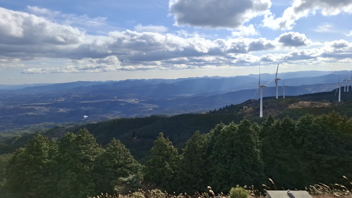 山岳道を3~4km走ると、青山高原と思われる視界の開けた丘陵地に出てきました。