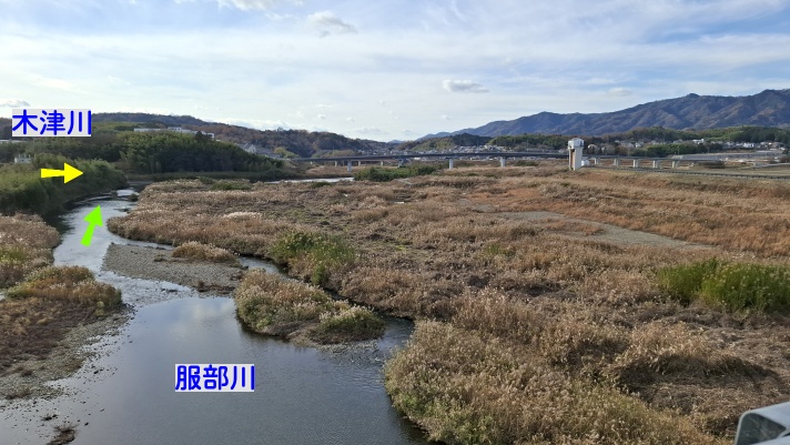 13:56 伊賀市を流れる木津川と服部川の合流地点(西を向いています)