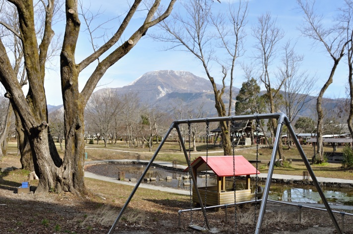 キャンプ場から望む伊吹山・・・ 雪は何処?