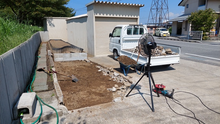 駐車場の一角にある畑が邪魔で、長年、車の切り返しに苦労していましたが、この度、重い腰を上げることにしました。