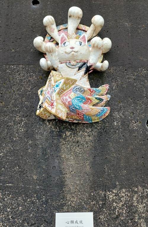 歩道沿いにある猫のオブジェがズラリ。勿論、陶器です!