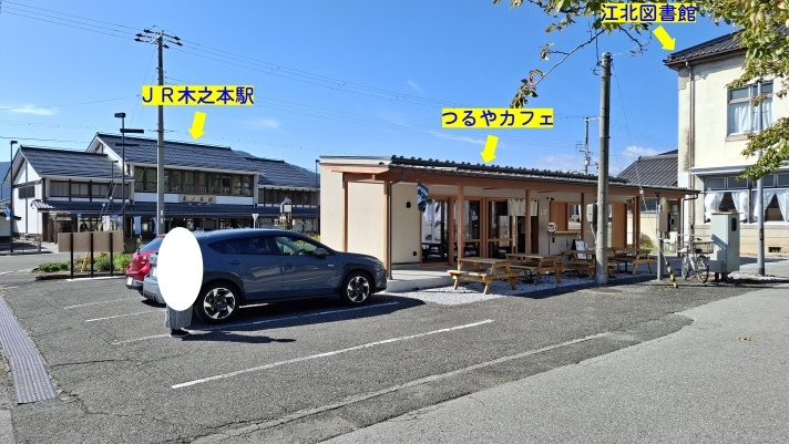 14:15 目的地は、鶏足寺ですが、石道寺観光駐車場に停めます