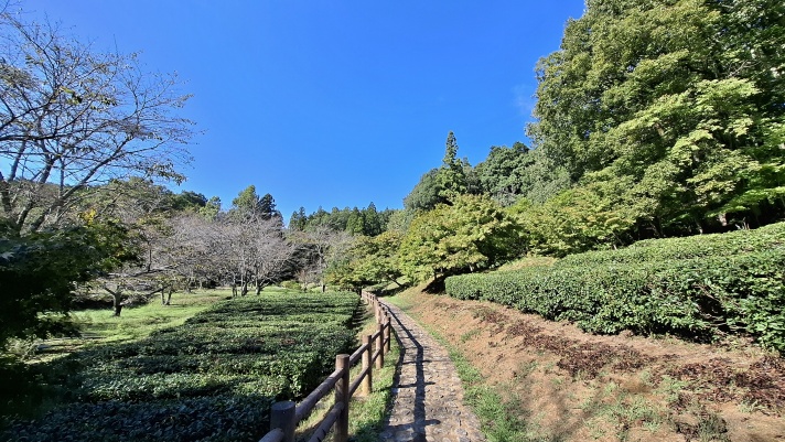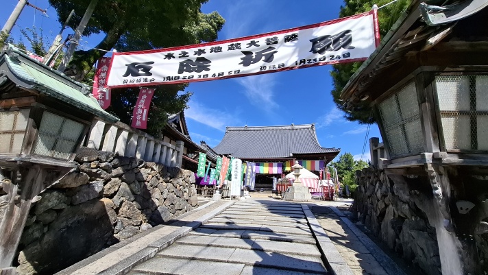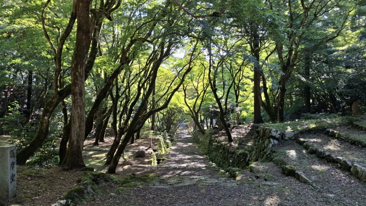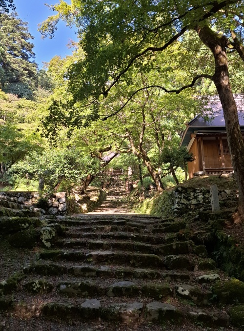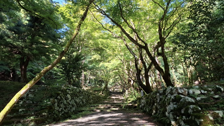 駐車場近くにある石道寺から続く、鶏足寺への参道