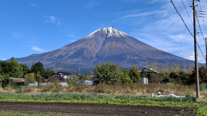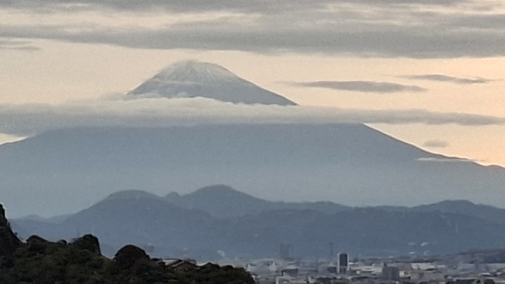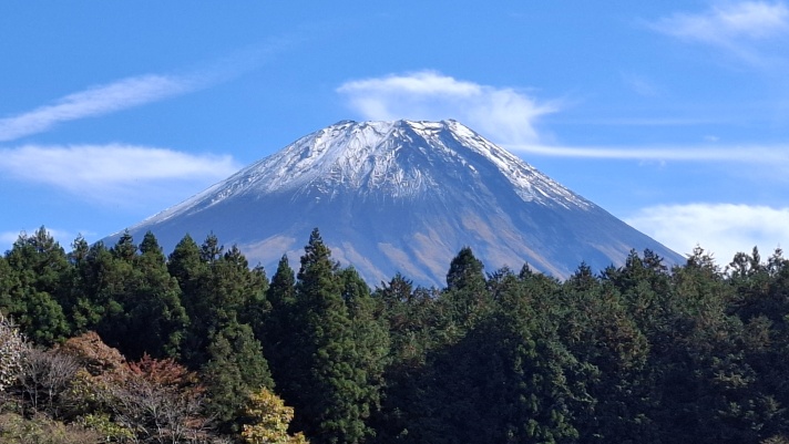 そこには、雲一つ掛かっていない、「名峰富士山」が。 しかも、冠雪した理想形のお姿で。
