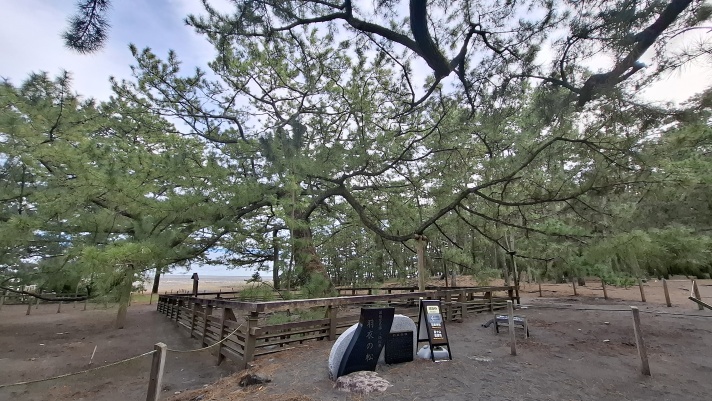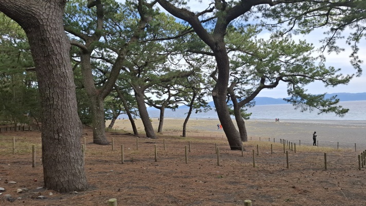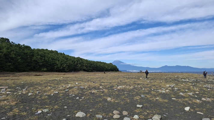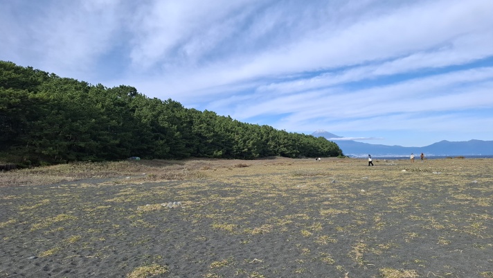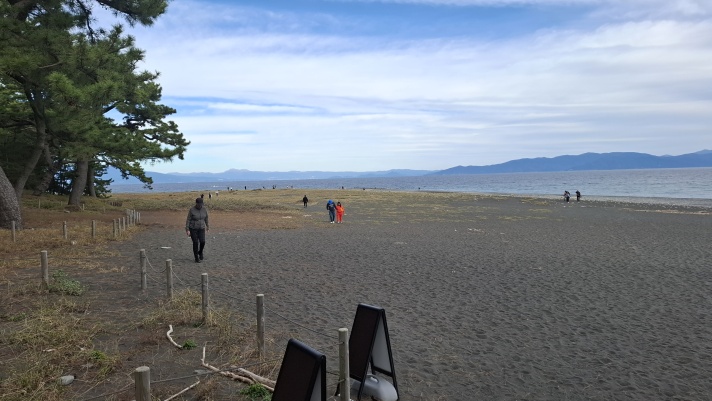 少し砂浜を進むと・・・ 三保松原越しに富士山が