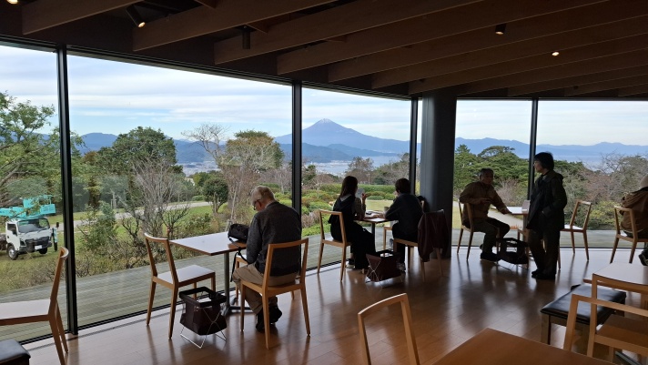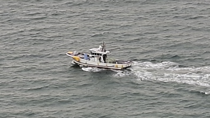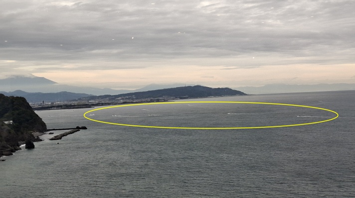 朝食を採っているホールの窓越しに、駿河湾の海岸寄りを小型漁船が多数うごめいていました