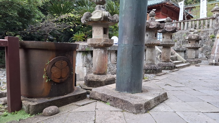 鳥居の脇にあった徳川家「三つ葉葵」紋の入った水瓶