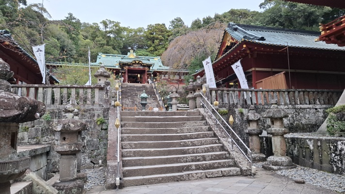 ロープウエイを使わず、下から上がってきた場合、階段が1000段以上あるようで、日本平からロープウエイで下って来た方が楽ちん!です