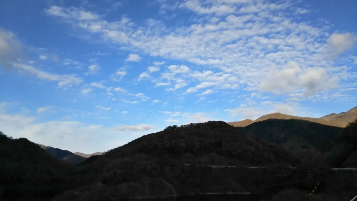 夕日に照らされた山肌が美しい・・・