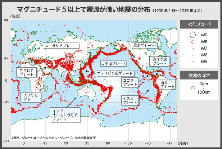 日本の国土は、世界全体の0.25%であるにも関わらず、全世界で起きている M6 以上の地震の2割は、日本で起きているそうです。